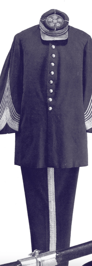 Cet uniforme qu’il porta en 1873 en tant que général d’armée durant des manœuvres à Narashino dans le département de Chiba, était calqué sur un uniforme de l’armée française.