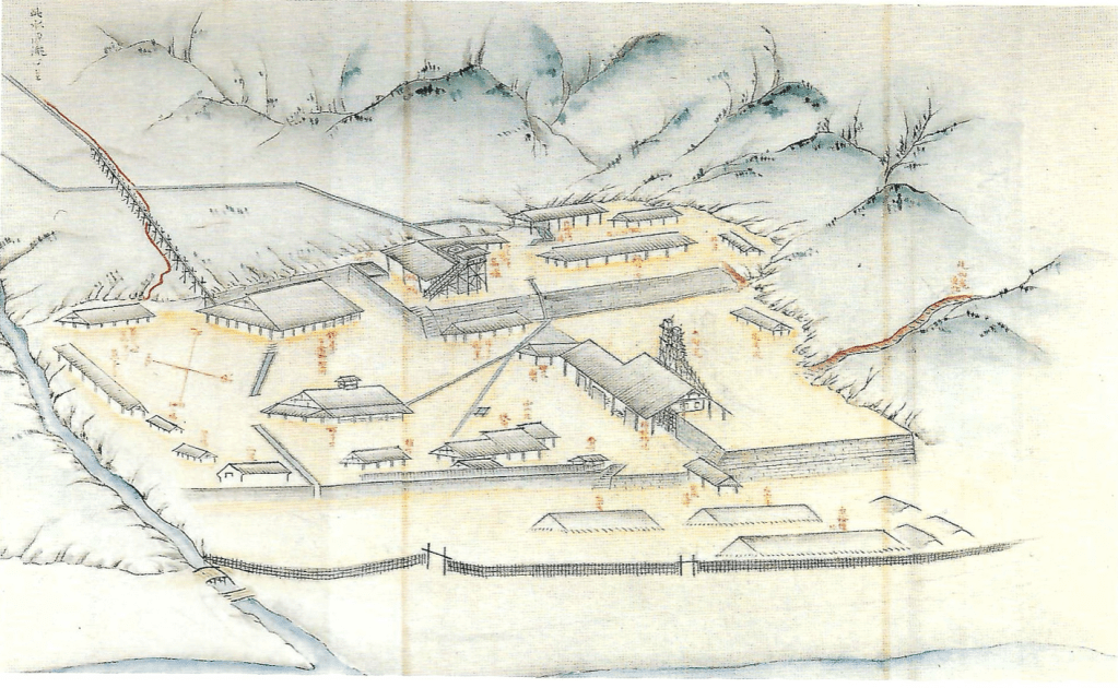 Est reproduit ici un des vingt-six feuillets de l’ouvrage « Sasshû mitori ezu » réalisé en 1857 par Senjû Dainosuke du clan de Saga, à partir de ses observations menées dans le clan Satsuma. Cette illustration représente, au centre, un four à réverbère, entouré de hauts fourneaux, de forges, d’ateliers de ferronnerie avec des établis de forgeron, des verreries, ainsi que d’autres installations telles que des aires de stockage de sable ferrugineux, et un canal hydraulique permettant d’acheminer l’eau pour activer une force motrice. Le document offre une vue de l’ancien Shûseikan avant sa destruction durant de la guerre anglo-Satsuma de 1863.